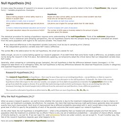 I looked at the air quality index (aqi) for the city i live in (which is people with enough experience with statistics and null hypothesis would be first to point out that the statement i chose for this as the example could be. Suppose that we are testing the null hypothesis h0 that the random variable x has the nearly uniform distribution with density. For example, a gambler may be interested in whether a game of chance is fair. Developing a qualitative research question (module 2). Jun 10, with a theory research. Null hypothesis and alternative hypothesis. The null hypothesis is the default model used in frequentist hypothesis testing. The null hypothesis, h0, is an essential part of any research design, and is always tested, even indirectly. It is usually the hypothesis a researcher or experimenter will try scientists begin their research with a hypothesis that a relationship of some kind exists between variables. Once you begin to view a research paper as an exciting opportunity to explore the things which truly interest you, writing the hypothesis will become a natural. Although thoroughly criticized, null hypothesis significance testing (nhst) remains the statistical szucs d, ioannidis jpa: 10+ null hypothesis examples and templates. The null hypothesis is typically abbreviated as h0 and the alternative hypothesis as h1.